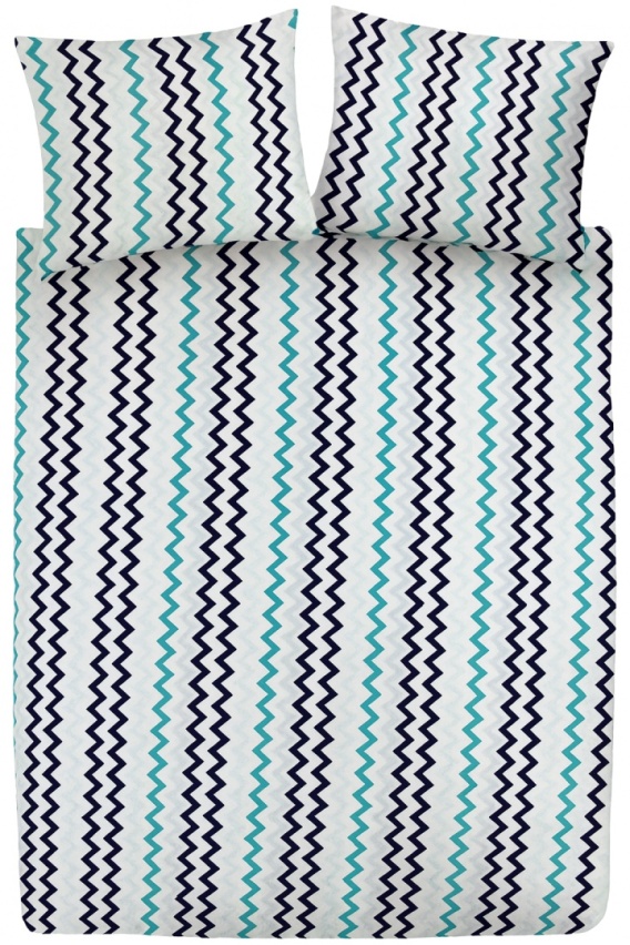 Pościel 160x200 100% bawełna – komplet z poszewkami | Polska produkcja| turkusowy / granatowy zygzak