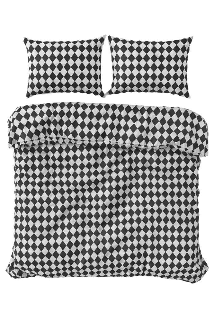 Pościel 160x220 + 2 poszewki| 100% bawełna | białe / czarne romby