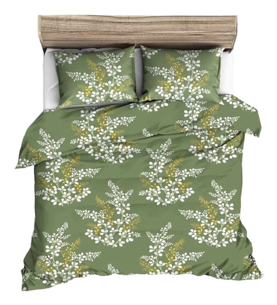 Pościel 160x220 + 2 poszewki| 100% bawełna | gałązka na zielonym 1449