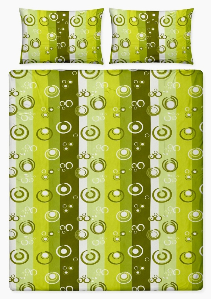 Pościel 160x220 + 2 poszewki | 100% bawełna | zielone kółka ręcznie malowane