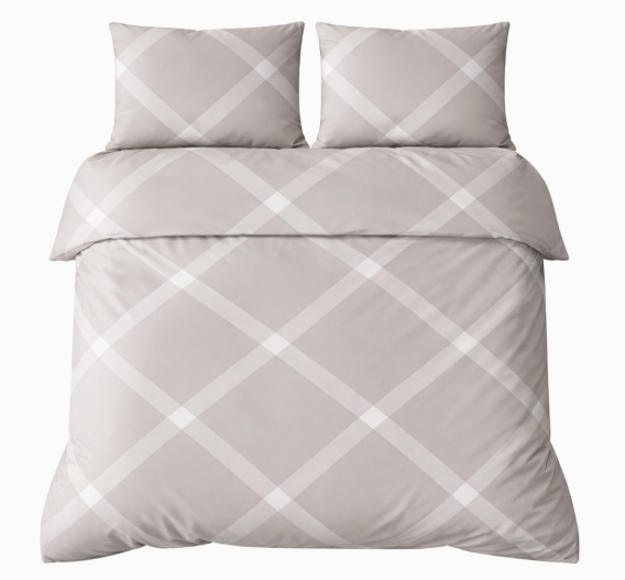 Pościel 220x240 + 2 poszewki | 100% bawełna | Beżowa krata 5185 C