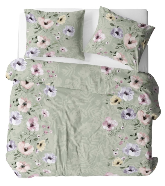 Pościel 220x240 + 2 poszewki | 100% bawełna | kwiaty kolor w mięta 1993